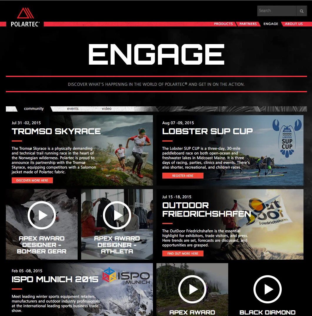 We redesigned the Polartec website utilizing the “Impossible Made Possible” marketing strategy. The goal was to design a site that could serve both the consumer and trade audiences. By highlighting the attributes of the Polartec products and by creating user generated and influencer outdoor adventure stories, we were able to tell the “Science of Fabric” brand strategy story with curated Polartec content. Users could also click to find garments that were manufactured with Polartec fabrics on 3rd party retail sites.
